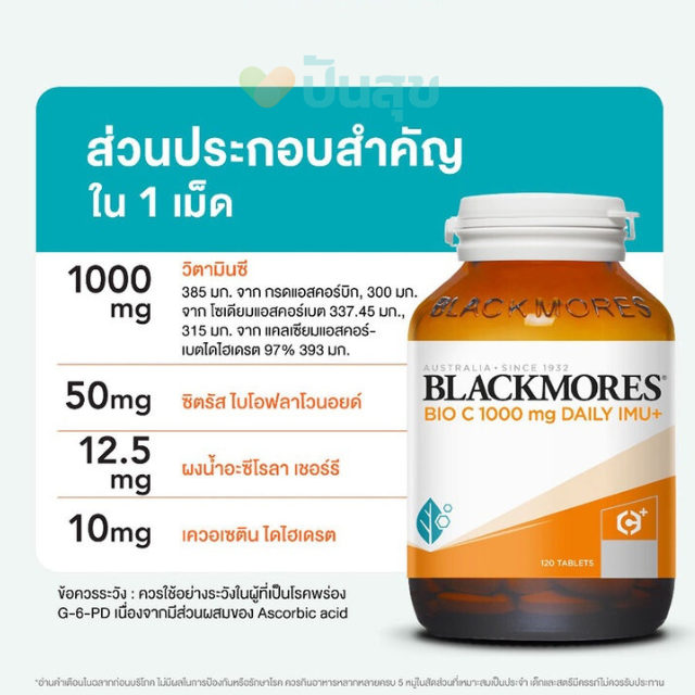 *ใหม่ Blackmores Bio C 1000mg. Daily IMU+ (120 Tablets) แบลคมอร์ส ไบโอ ซี 1000 มก. เดลี ไอมู+ (ผลิตภัณฑ์เสริมอาหาร)