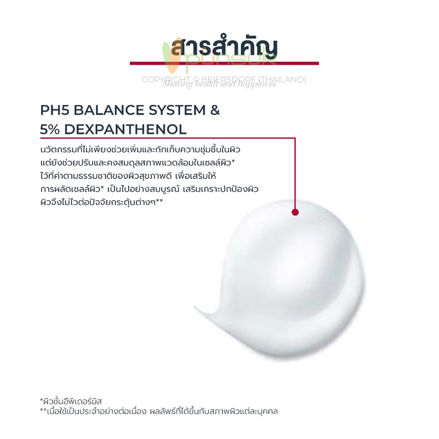 เซรั่มบำรุงผิวกายเนื้อบางเบาแตกตัวเป็นน้ำ ซึมซาบไวทันทีที่ทา ช่วยเติมความชุ่มชื้นและคงสมดุล pH5 ตามธรรมชาติของผิวสุขภาพดี เสริมเกราะปกป้องผิวให้แข็งแรง ไม่ไวต่อปัจจัยกระตุ้นและมลภาวะ สูตรอ่อนโยนพิเศษสำหรับผิวบอบบางแพ้ง่าย รวมถึงผู้ที่มีแนวโน้มเป็นภูมิแพ้