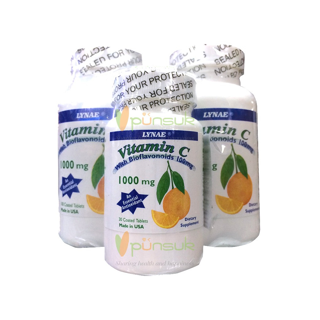 Lynae Vitamin C with Bioflavonoids BUY 2 GET 1 FREE (100 + 100 + 30 Coated Tablets) อาหารเสริม